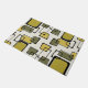A stylish 1950's atomic era abstract art pattern with skewed squares in chartreuse green and yellow.