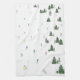 A tea towel featuring a watercolor print with colourful skiers and snowboarders on a snowy mountain slope.