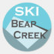 Let 'em all know you want Bear Creek open to skiers and boarders with this stylish round sticker, reminiscent of ski area logos of the 70s and 80s.
