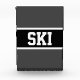 Classy strong bold white font inside a highlighted wide black stripe on a dark grey background with SKI front and centre. Make It Your Own: Both the stripe colour and the background colour of this design can be customised/changed by editing the design. The text is optional and can be personalised.