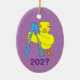 A yellow chick holding skis and surrounded by snowflakes is a funny gift design for skiing friends and family. Date can be changed.