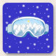 Ski Goggles with mountain reflection. Ski goggles and Snowflake Pattern on blue background. Playful sport winter design.