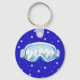 Ski Goggles with mountain reflection. Ski goggles and Snowflake Pattern on blue background. Playful sport winter design.