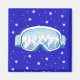 Ski Goggles with mountain reflection. Ski goggles and Snowflake Pattern on blue background. Playful sport winter design.