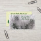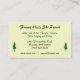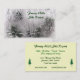 This business card advertises a ski resort. The lovely image on the front represents the essence of winter. Evergreen trees stand out against the bare branches of deciduous trees on a frosty hillside. Every branch and needle is covered with snow, ice and frost. The full effect is a painterly impressionistic composition of the season. The back has all your pertinent information ready to be customised to fit your personal situation.