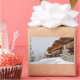 Rectangular photo sticker of a big chalet in the snow in the ski resort Espace San Bernardo at the border between Italy and France in winter.