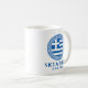 Skiathos, Greece coffee mug featuring the national flag of Greece inside a Greek blue Aztec circle. This mug is perfect for you to enjoy drinking your coffee while you are on vacation in Skiathos, Greece or if you are proud to be from Skiathos.