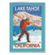 Skier Carrying Snow Skis - Lake Tahoe, California - Vintage Travel Poster was created in 2007. This image depicts scenes from Lake Tahoe, CA.