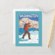 Skier Carrying Snow Skis - Washington Postcard