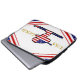 The sleeve is made of nice feeling material and seems very durable. I'm not sure how easy it'll be to clean, but the construction seems sound and the fabric is quick thick. I also like the double zipper. The printing is lovely and appears durable. The white on black contrast is nice, and the design very elegant.