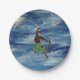 Skiing art paper plate