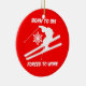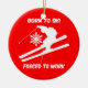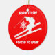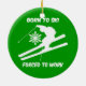 Born to ski forced to work! Unique and colourful red and green snow skiing Christmas ornaments for snow skiers to decorate the holiday Christmas tree. Awsome Christmas gifts for skiers!