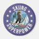 Funny winter ski sports illustration, showing mountain graphics and a woman on skis, and the saying: skiing is my superpower and little stars. This is the perfect gift for everyone, who loves skiing, mountains, and winter sports.