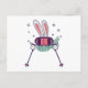 Skiing Rabbit with ski poles ski goggles and scarf Postcard