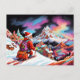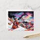 Skiing santa looking down on valley christmas holiday postcard