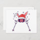 Skiing Santa Rabbit with Santa Hat and ski poles S Postcard