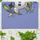 A festive tea towel featuring an over excited snowman dashing through the snow on skis, in woolly winter hat and tartan scarf. An upbeat image for Christmas.