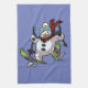 Skiing Snowman In Woolly Christmas Hat Cartoon Tea Towel