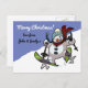 Skiing Snowman Merry Christmas! Message Cartoon Holiday Postcard