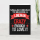 Skilled Enough To Become A Lineman Crazy Enough To Love It. Makes the perfect Birthday, Christmas, Thanksgiving and anniversary gift to a Lineman!