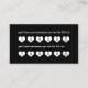 An elegant modern, stylish skin care business card with elegant script lettering style typography in white on a trendy and elegant black background with a loyalty card at the back.