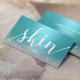 Skincare Salon Spa Silver Script Aesthetician Elegant Turquoise Business Cards.