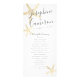 Festive gold starfish on a modern, simple and elegant wedding program for a nautical or beach destination wedding.