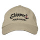 A personalised skipper embroidery nautical black lifesaver anchor style. An original casual fashion embroidered baseball cap sure to make an impression on, or off the boat.