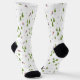 Winter ski scene with pine trees and snowflakes over a white background. Skiing socks. Downhill skiing pattern. Red, white and green ski pattern. Christmas socks. Ski lovers socks. Ski lovers gift. Person on skis. Modern ski pattern. Ski illustration. Holiday socks. Skiing gift. Winter ski socks. Cute skiing socks.