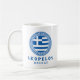 Skopelos, Greece coffee mug featuring the national flag of Greece inside a Greek blue Aztec circle. This mug is perfect for you to enjoy drinking your coffee while you are on vacation in Skopelos, Greece or if you are proud to be from Skopelos.
