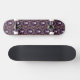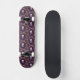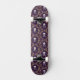 A Skateboard Designed In A Purple Funky Weaved Pattern Of White Skulls and Bones And Flowers For Her
