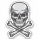 This image depicts a classic skull and crossbones symbol. The skull is rendered in a detailed, realistic style with a menacing expression, including a furrowed brow and a slightly open mouth with visible teeth. The crossbones are crossed beneath the skull, with the ends of the bones extending slightly beyond the skull's outline. The entire image is rendered in grayscale, with varying shades of black and white to create depth and texture.