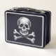 This lunchbox featuring a bold white skull and crossbones, also known as the classic jolly roger, set against a deep black background brings timeless pirate energy into everyday life in a way that feels fun, rebellious, and unmistakably cool. Instantly recognizable and rich with history, the skull and crossbones has long been associated with pirate flags, daring voyages, and lives lived outside the rules, making this lunch pail a standout choice for anyone who loves striking imagery with a sense of adventure. The high-contrast design feels clean and graphic while still carrying layers of meaning tied to piracy, secret societies, and legendary outlaw symbolism, giving it an edge that goes far beyond an ordinary lunch container.