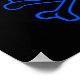 A neon blue skull and crossbone illustration with a heart shaped eyepatch. Black background.