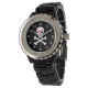 A skull and crossbones wearing a hot pink heart shaped eye patch watch with numbers ; jolly roger talk like a pirate flag ship girly