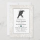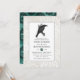 Gothic wedding rehearsal dinner invitation featuring a raven and a lace background with a skull damask pattern reverse.