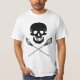 Skull and Lacrosse Sticks Tee Shirt: Skulls crossbones parody spoof satire funny joke humour skeleton skeletons cross bone bones sports stick ball throw toss pass shoot shot goal goals goalie goalies offence defence play player danger dangerous bad evil death punish punisher game games