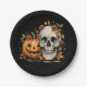 Serve up frightful fun with these festive Halloween paper plates! Featuring a spooky skull and smiling jack-o’-lantern surrounded by fall leaves and orange flowers, this hauntingly stylish design sets the perfect mood for your celebration. The bold orange and black spooky design make it ideal for any Halloween table setting.