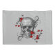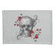 Black and white sketch of a skull with beautiful red roses and black swirls all around it. Reverse side of pillowcase is black, grey and white stripes for a change of look. This would make a great gift for a teens room or a college dorm room.