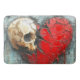 This bath mat has an artsy skull heart design on it.