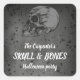 Skull & Bones Halloween Square Sticker. Customise & personalise text.