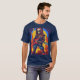 I give wanted to give this a 4 instead of a 5 because these Basic DARK T0shirts run unexpectedly SLIM or Narrow. Which is great if you do not have a potbelly, but I have a paunch. It isn't the shirt's fault that I've got a beer belly. The design and shirt itself is a quality cotton shirt. The color is more of a deep purple, but still a very pretty color. The Basic DARK T-shirts run a bit SLIMMER than the Basic Ts. The neck is a fraction narrower (or seems to be narrower) also. I'm a paunchy middle-aged woman and my neck is 12 inches (31cm) thick and the neckline fell about the same as in the photo of the man, and I had the desire to tug it a bit. So if you're a thick necked man or like loose shirts, be aware these are slimmer shirts. Once I get rid of my lockdown paunch it'll look great. The shirt washed well in cold water with no apparent bleeding. We don't have a dryer, so it hung dry. Did not shrink. Love the colors and the design. The design looks smaller on my shirt than it does on the model on-line. But still, it looks good on the shirt. The printing looks as it does on the model, just the size seems fractionally smaller. Washed garment in cold water, hung dry and design appeared unaffected.