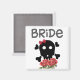 Cool skeleton bride design for hip brides,Gothic Brides or Halloween brides. This skull has a red bow and red flowers and the word bride in black and white.