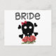 Cool skeleton bride design for hip brides,Gothic Brides or Halloween brides. This skull has a red bow and red flowers and the word bride in black and white.