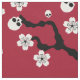 This design has a gothic floral design of cherry blossoms and skulls on a red background.