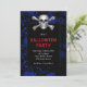 Skull Crossbones Blue Splattered Halloween Party Invitation