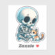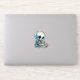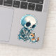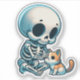 A wide-eyed, fluffy cat gently cradling a tiny cartoon skull between its paws like a precious toy. This sticker blends gothic edge with adorable irony—perfect for those who love dark aesthetics but melt at kitten yawns. The skull wears a mini bowtie because even death deserves a little charm.