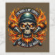 This striking design showcases a skull with fiery orange eyes, adorned by a military helmet. Behind the skull, two paintbrushes are crossed, symbolising creativity and artistry on the road. The vibrant flames surrounding the skull create an intense atmosphere, reflecting the passion for motorcycle riding and artistic expression. The bold text emphasises the connection between travel, biking, and creativity, making this representation appealing to enthusiasts of both art and motorcycles.