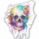 Grunge skull design with colourful splatters and beautiful blooming flowers