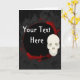 This vector-drawn greeting card features a fanged skull with ornate "blood" embellishments and a customisable template field. Click "Customise it" to modify the design further.